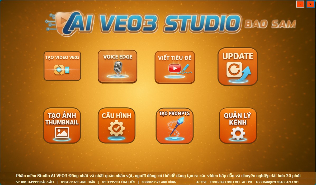 Phần mềm AI VEO3 STUDIOBảo Sâm là phần mềm tạo video AI và quản lý kênh YouTube tự động Phần mềm sử dụng công nghệ AI để tạo ra các video chất lượng cao từ văn bản, hình ảnh và âm thanh